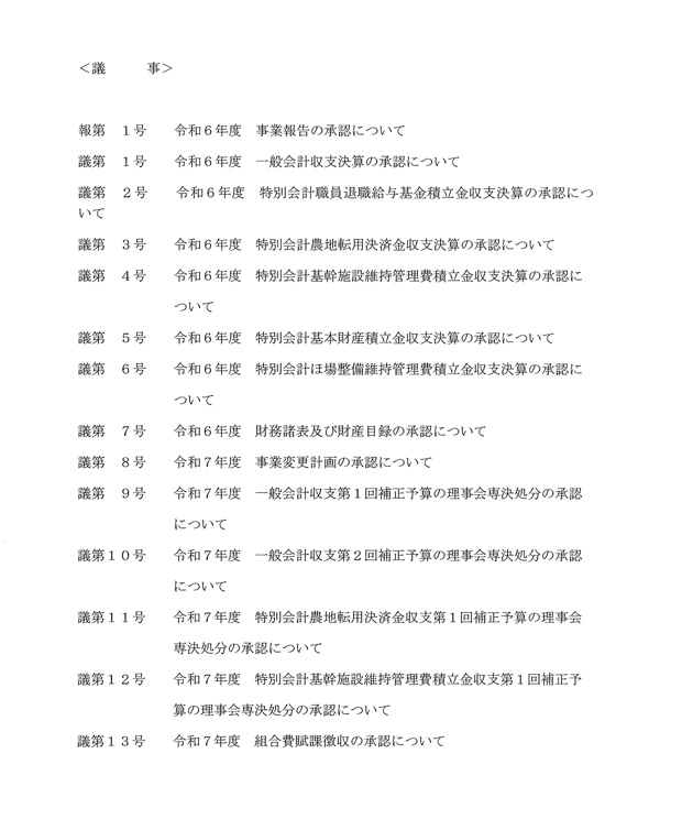 | 議第 9号 | 令和7年度 事業計画の議決について |